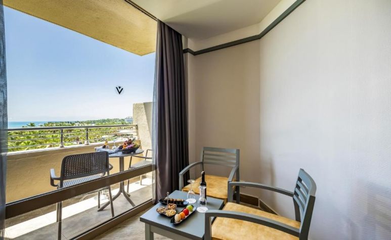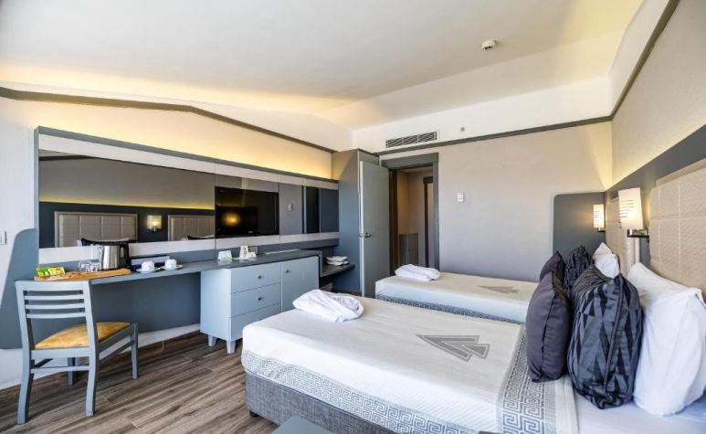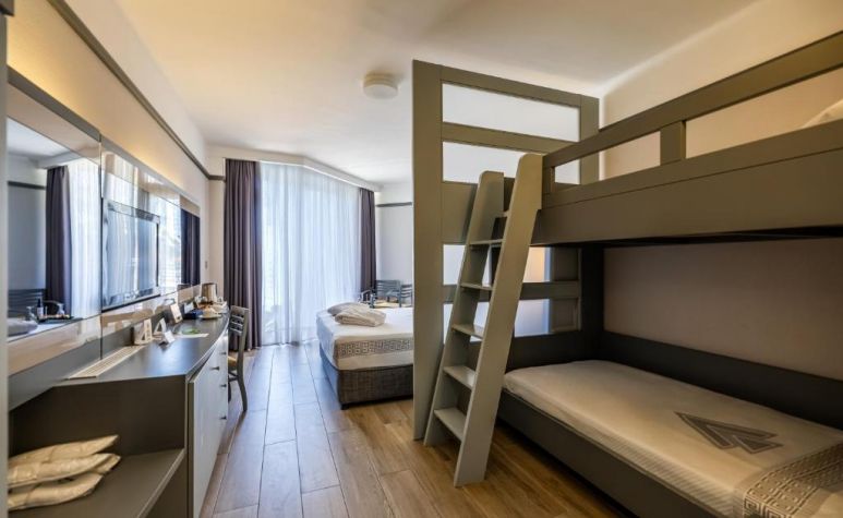 312 Standard Room (изглед суша или страничен изглед море - 24 м2), 4 Handicapped Room (пригодени за хора с ограничена подвижност - 24 м2), 45 Family BunkBed Room (двойно и двуетажно легло, изглед градина - 29 м2), 35 Family Room (2 спални, двойно и две единични легла - 42 м2), 56 Suite Room (две спални, двойно и две единични легла, хол, изглед море – 56 м2).