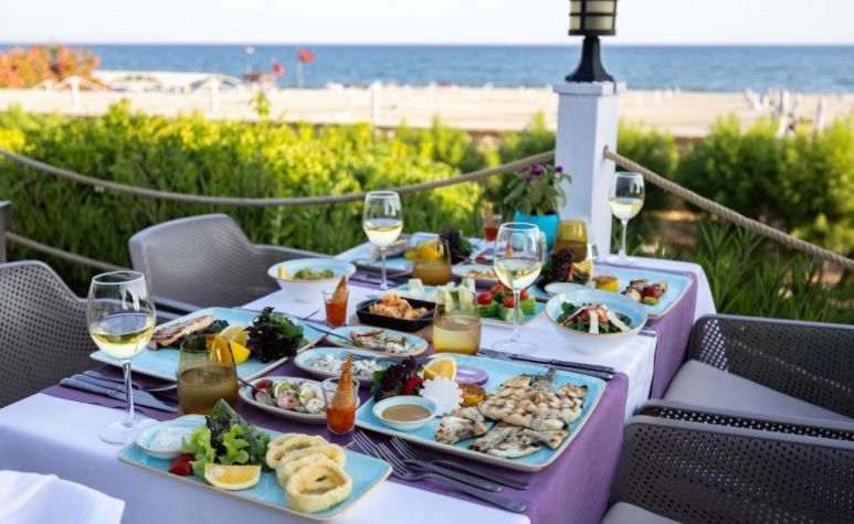 Ultra All Inclusive - закуска, обяд и вечеря на шведска маса, междинни хранения, алкохолни и безалкохолни напитки - без лимит (съгласно концепцията на хотела).