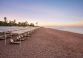 Собствен, пясъчен. Чадъри, шезлонги, матраци и плажни кърпи на плажа и при басейна - безплатно.