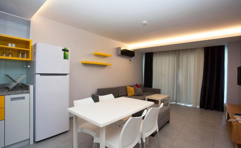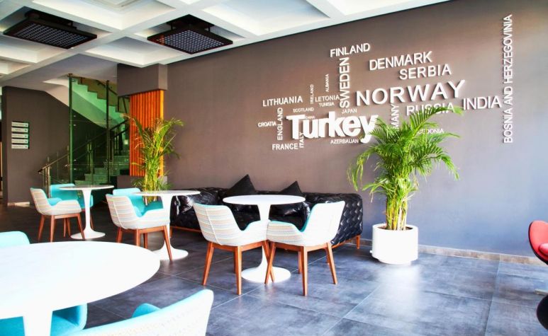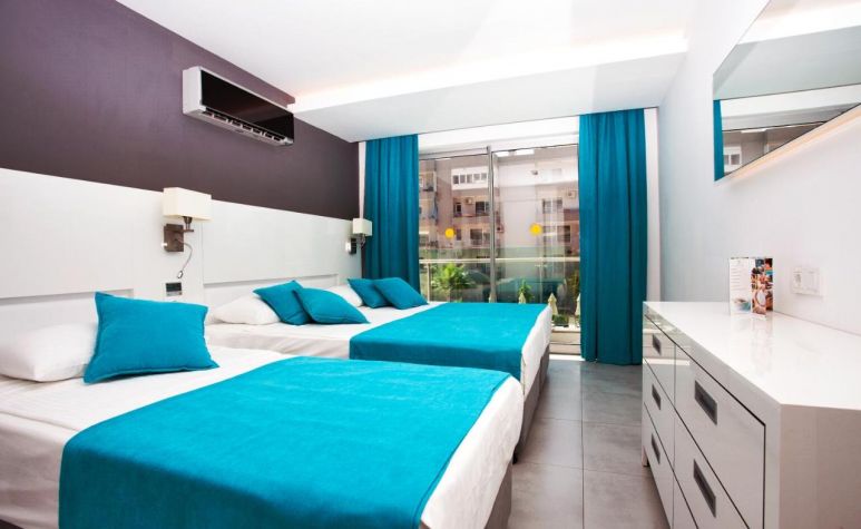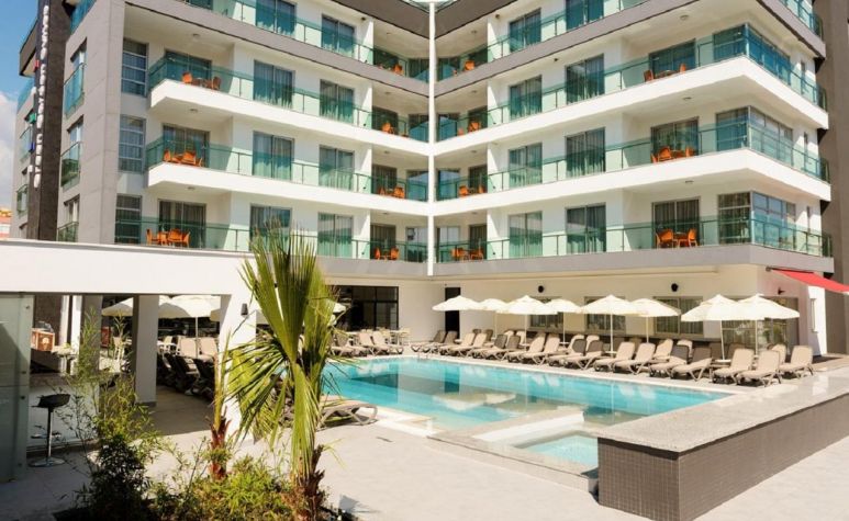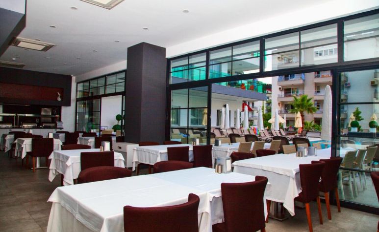 Хотелът се намира на 350 метра от плажа и на 4 километра от Червената кула в Алания.