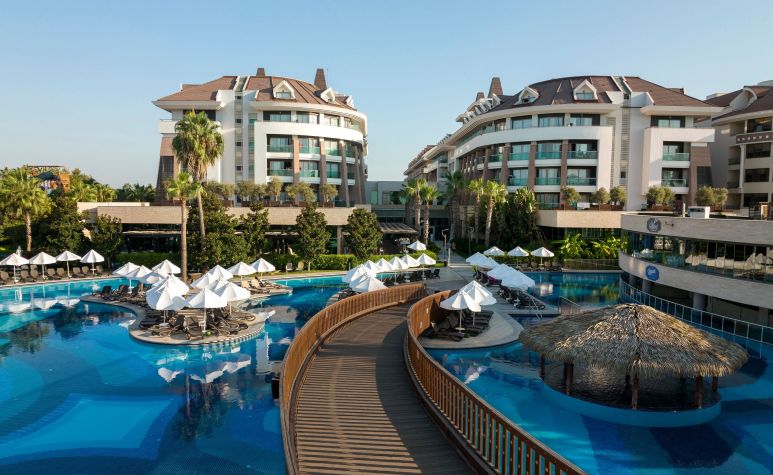 Основен ресторант, 3 а-ла-карт ресторанта (турски, италиански, рибен – 1 безплатно посещение на 1 от ресторантите при минимум 7 нощувки, с предварителна резервация), 2 снек ресторанта, сладкарница, 6 бара, 2 открити и 1 закрит басейн, аквапарк с 4 водни пързалки за възрастни и 3 за деца, СПА център, 3 конферентни зали, паркинг.