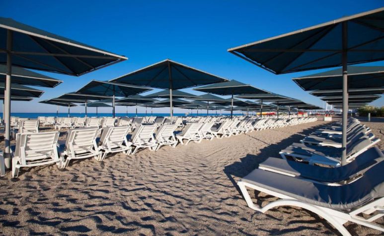 Плаж – собствен, пясъчно-чакълест. Чадъри, шезлонги и кърпи при басейна и на плажа – безплатно.