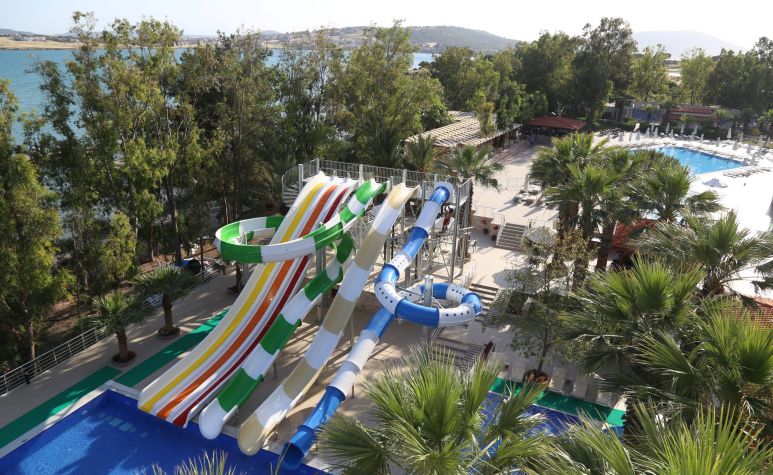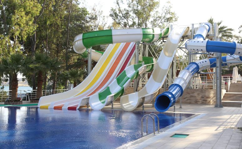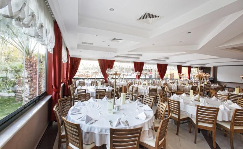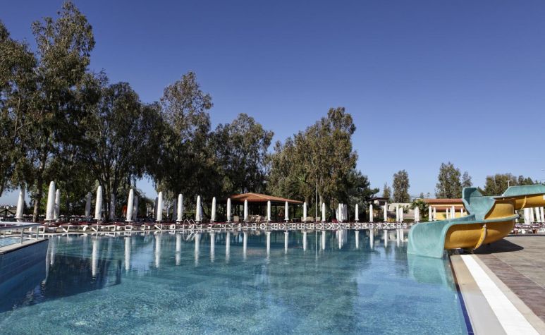Основен ресторант, 3 бара, 1 открит, 1 закрит и 1 детски басейни, дискотека, водна пързалка, амфитеатър, магазини, SPA център, 2 конферентни зали, паркинг. За децата: Детски басейн, водна пързалка, детска площадка, Мини-клуб (4-12г). Безплатни услуги: Фитнес, плажен волейбол, баскетбол, анимационна програма, интернет (в лоби). Платени услуги: СПА център, сауна, турска баня, джакузи, масаж, пилинг, фризьор, магазини, химическо чистене, обмяна на валута, билярд, игрални автомати, моторни водни спортове.