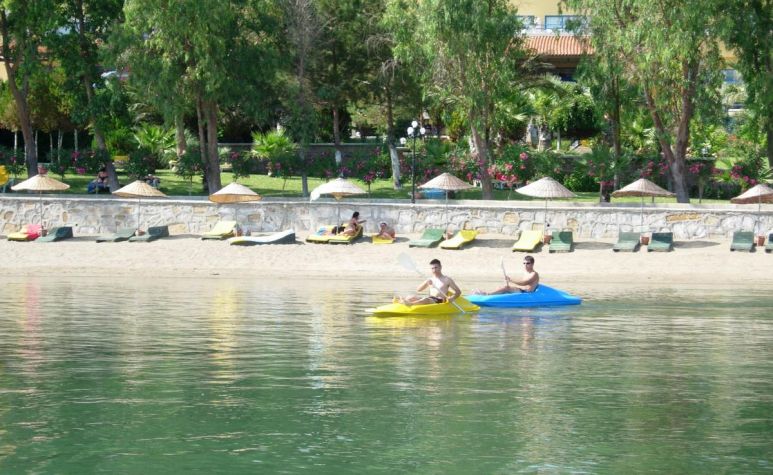 Плаж – собствен, пясъчно-чакълест. Чадъри и шезлонги на плажа и при басейна – безплатно. Кърпи за плажа с депозит.