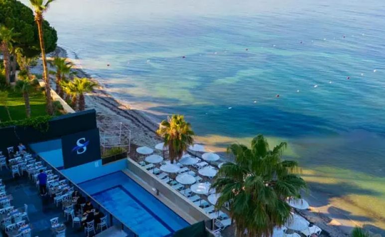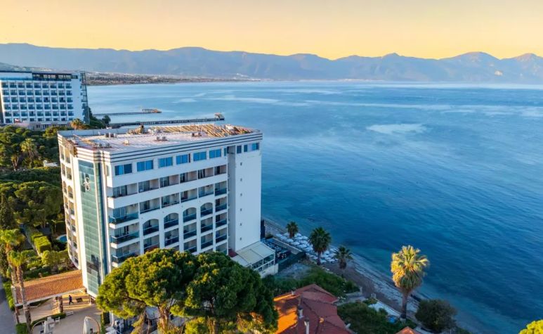 Хотелът се намира на 80 км от летише Измир, 121 км. от летище Милас, на 4 км. от центъра на Кушадасъ, на 50 м. от брега на морето. Построен на площ от 15 000 кв.м. Последно реновиран през 2018 г.