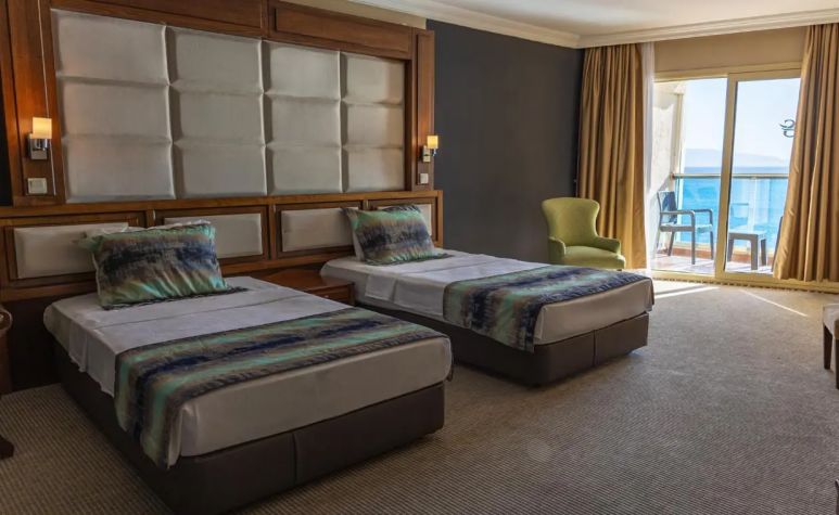 Хотелът разполага с общо 97 стандартни стаи (27 кв.м), от които 16 без балкон, 18 с изглед градина, 62 с изглед море. Всички оборудвани с климатик, телевизор, телефон, баня с душ или вана, сешоар, минибар (платен), сейф (платен). Почистване на стаите – всеки ден, смяна на бельото и кърпите – 2 пъти в седмицата.