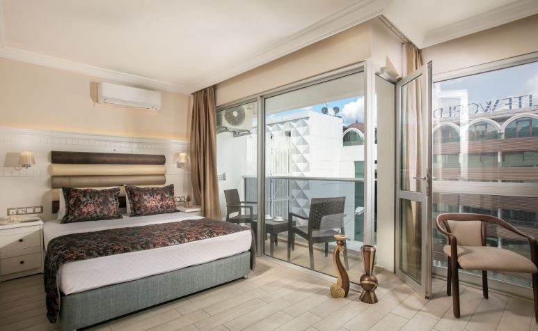 Хотелът разполага с 97 стаи, от 88 които стандартни стаи с балкон (20 -30 кв.м), 9 фамилни стаи с две отделни спални и една баня (40 кв.м). Всички стаи са оборудвани с климатик, телевизор, телефон, баня с душ, сешоар, минибар (зарежда се всеки ден с вода - безплатно), сейф (безплатен). Почистване на стаята и смяна на кърпите - всеки ден, смяна на спалното бельо - 2 пъти в седмицата.