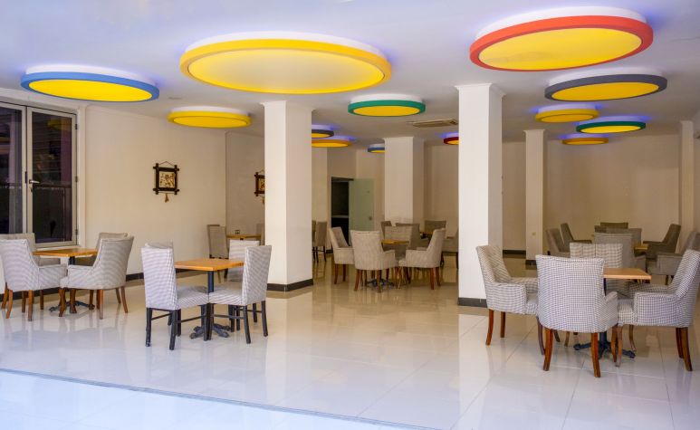 All Inclusive – закуска, обяд и вечеря на шведска маса, допълнителни хранения, местни алкохолни и безалкохолни напитки без лимит (съгласно концепцията на хотела).