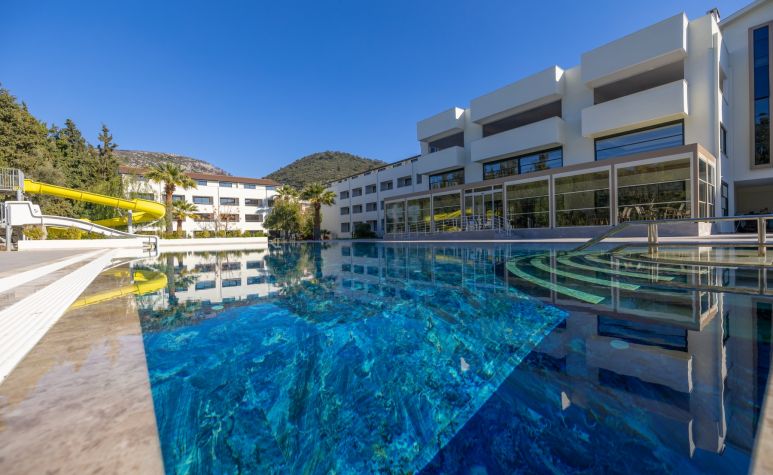 Намира се на 65 km от летище Измир, на 124 км от летище Милас, на 5 км. от центъра на Кушадасъ, на 250 м. от брега на морето. Построен на обща площ от 12 500 кв.м.