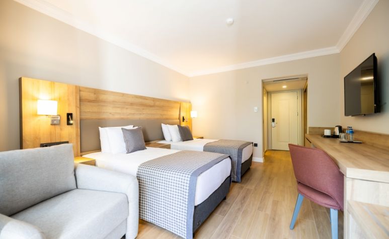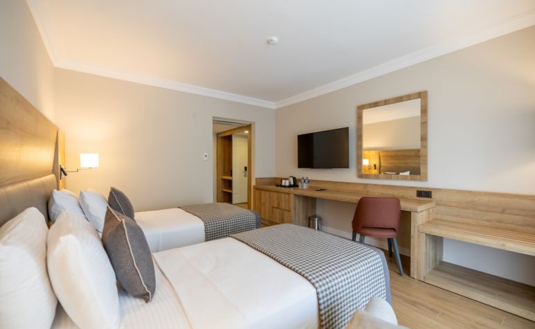 Хотелът разполага с 196 стаи, от които 166 стандартни (25 -28 m² ) , 28 фамилни (спалня и всекидневна, 38 m² ) и 2 стаи за хора с увреждания (25 -28 m² ). Всички стаи са оборудвани с климатик, телевизор, телефон, Wi-Fi, баня с душ / вана, сешоар, минибар (бутилка вода при настаняване), сейф (безплатно), балкон. Почистване на стаите - всеки ден, смяна на кърпите и спалното бельо 2 пъти в седмицата.