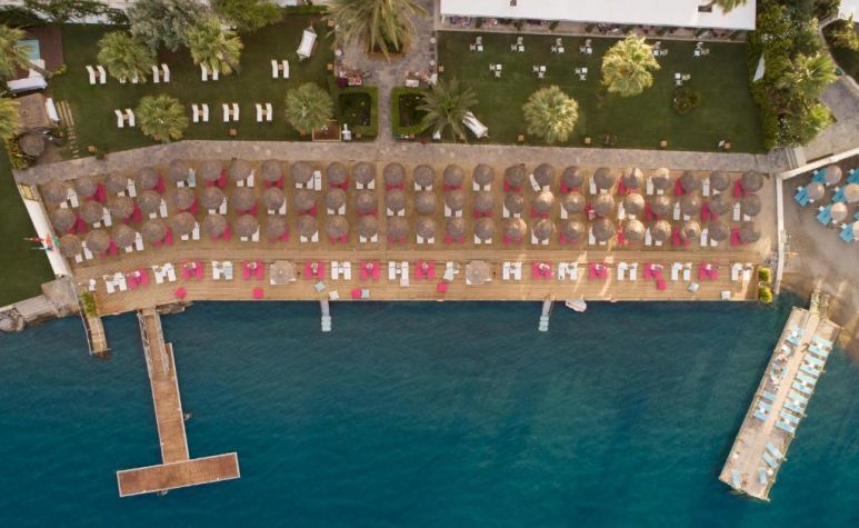 Хотелът се намира на 35 км от летище Милас, на 900 м от центъра на Бодрум, в района на Бардакчъ, на брега на морето. Разполага с обща площ от 8000 m².