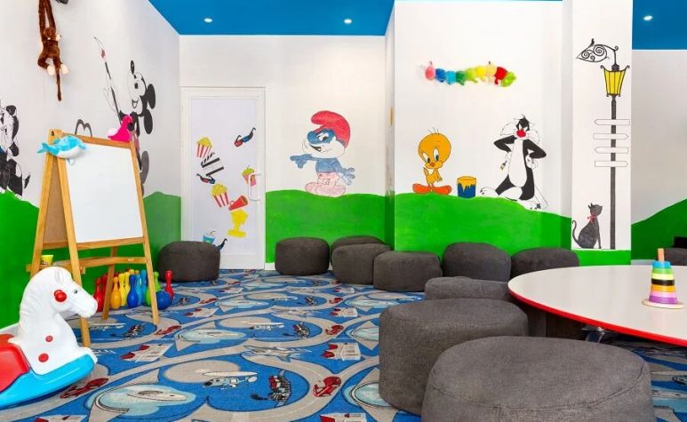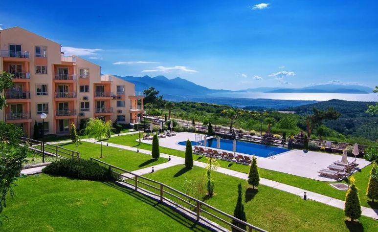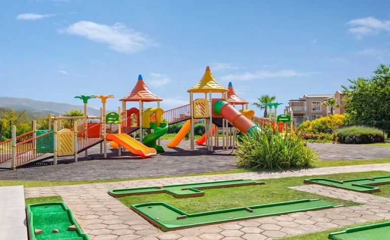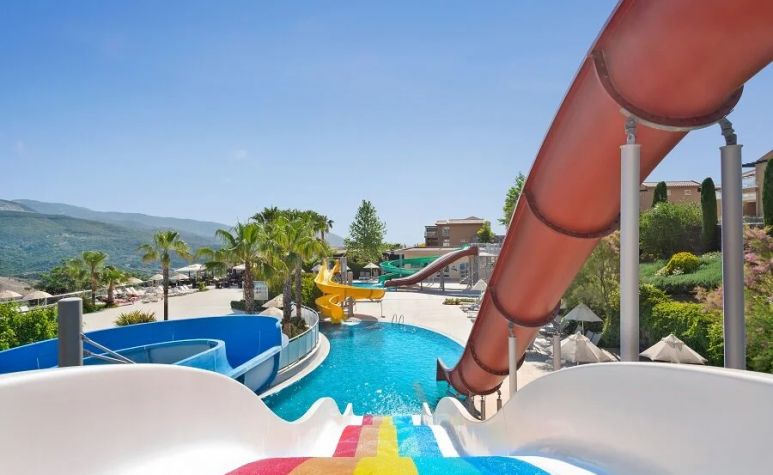 За децата: Детско меню, 3 детски басейна, 2 водни пързалки, детска площадка, мини клуб (4-12г), детска анимация, гига шах.
