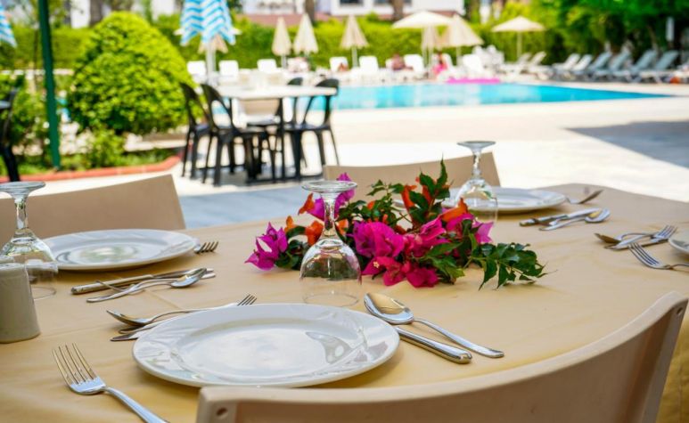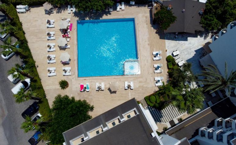 Хотелът разполага с 116 стандартни стаи, външен басейн, детски басейн, основен ресторант. Услуги предлагани в хотела без заплащане: външен и вътрешен басейн, паркинг, Турска вечер (1 седмично). Услуги предлагани в хотела срещу заплащане: доктор, фризьор, гладене, пералня, химическо чистене, сейф на рецепция, водни спортове, коли под наем, мини клуб, обмен на валута. ПЛАЖ: Градски плаж. Шезлонги и чадъри на плажа - платено, а при басейна- безплатно.