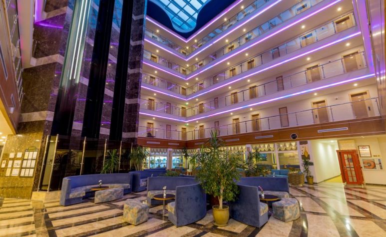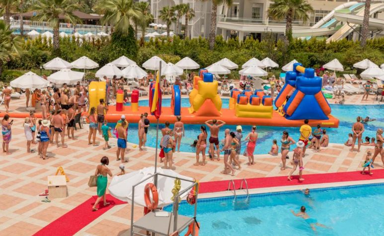 Основен ресторант, 3 бара, открит и закрит басейн, 3 водни пързалки, фризьор, 2 конферентни зали, Безплатни услуги: турска баня, сауна, аеробика, плажен волейбол, тенис ракети под наем, дартс, дискотека (напитки - платени), скуош, кану, безмоторни водни спортове. Платени услуги: Масаж, парна баня, билярд, осветление тенис корт, Интернет кафе, моторни водни спортове.