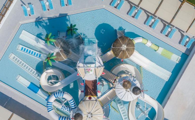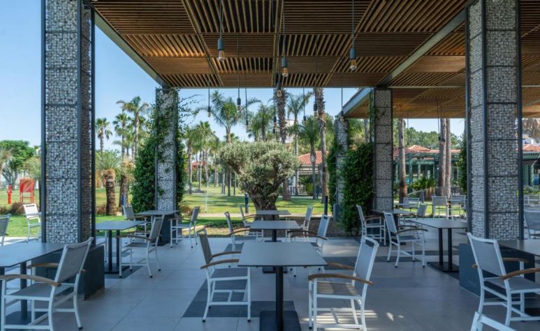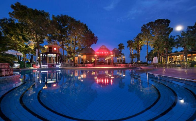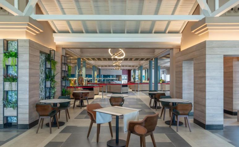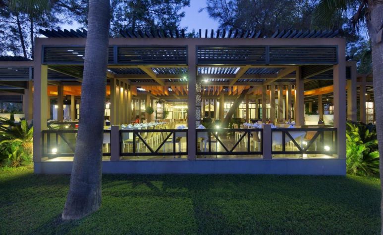 Основен ресторант, 2 а-ла-карт ресторанта (рибен и турски - срещу заплащане, с предварителна резервация), сладкарница, 5 бара, снек бар, 4 открити басейнa, аквапарк, СПА център, дискотека, магазини, конферентнa залa, паркинг.