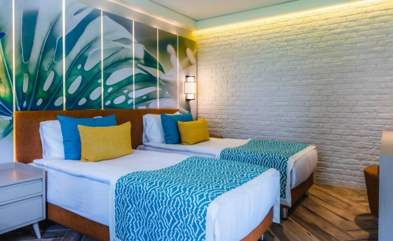 323 Standard rooms от които: 18 Back Yard Standart Room (двойно легло, френски балкон и тераса, разположени на 350 м от брега на морето – 20м2); 181 Middle Yard Standart Room (двойно или две единични легла, френски балкон и тераса, разположени на 200-250 м от брега на морето – 21м2); 124 Front Yard Standart (двойно или две единични легла, френски балкон и тераса, разположени на 100-150 м от брега на морето – 21м2); 23 Quadro rooms от които: 8 Middle Yard Quadro (двойно или две единични легла, френски балкон и тераса, разположени на 200-250 м от брега на морето – 30 м2); 15 Front Yard Quadro (двойно или две единични легла, френски балкон и тераса, разположени на 100-150 м от брега на морето – 30 м2); 70 Family rooms от които: 58 Back Yard Family Room (две спални с двойно и две единични легла, френски балкон и тераса, разположени на 350 м от брега на морето – 37 м2); 12 Front Yard Family (две спални с двойно и две единични легла, френски балкон и тераса, разположени на 100-150 м от брега на морето – 37 м2); 14 Family Suite (две спални с двойно и две единични легла, 2 бани, френски балкон и тераса, разположени на 100 м от брега на морето, 37-46 м2); 8 Villas (4 спални и 4 бани, френски балкон и тераса, разположени на 250 м от брега на морето – 100 м2).
