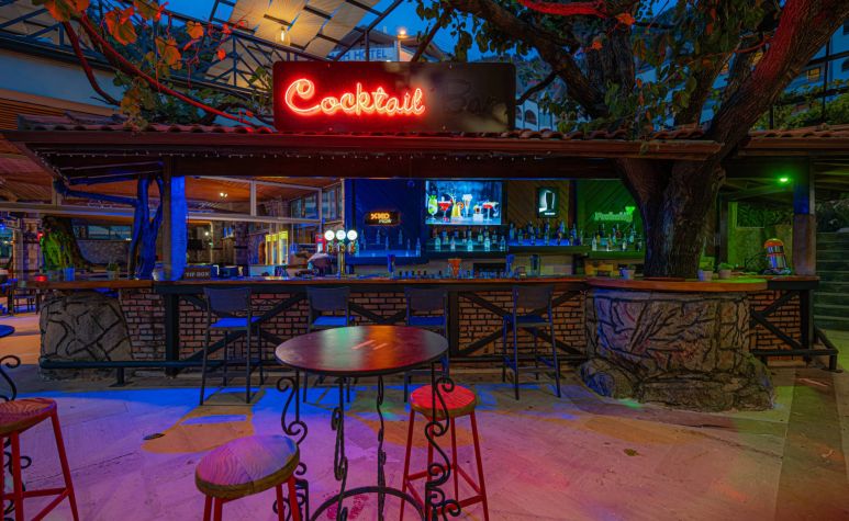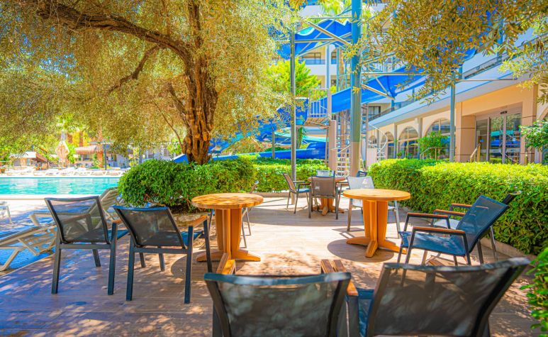 Основен ресторант, а - ла карт ресторант, снек бар, бар на плажа, открит басейн, 2 водни пързалки, Спа център.