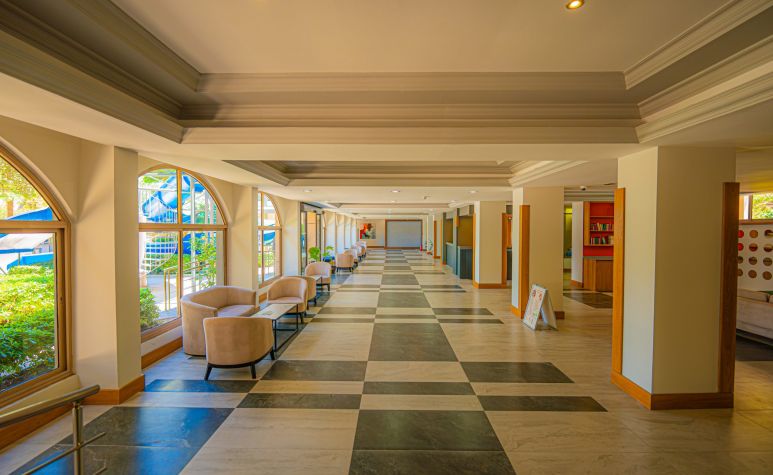 Основен ресторант, а - ла карт ресторант, снек бар, бар на плажа, открит басейн, 2 водни пързалки, Спа център.