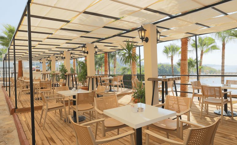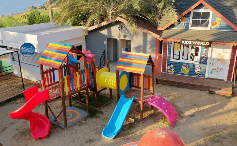 Основен ресторант, 1 а-ла-карт ресторанта (1 безплатно посещение при минимум 7 нощувки, с предварителна резервация), 1 снек ресторант, сладкарница, 3 бара, 2 открити басейна, 4 водни пързалки, СПА център, магазини, паркинг.