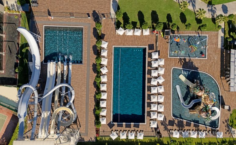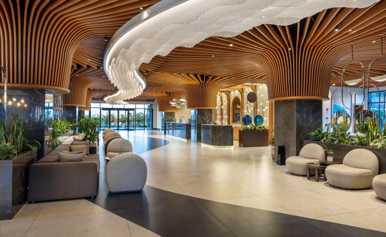 Основен ресторант, 1 а-ла-карт ресторант (с предварителна резервация, съгласно концепцията на хотела), 3 бара (1 от които 24 часа), закрит и открит басейн, аквапарк с 5 водни пързалки, СПА център.