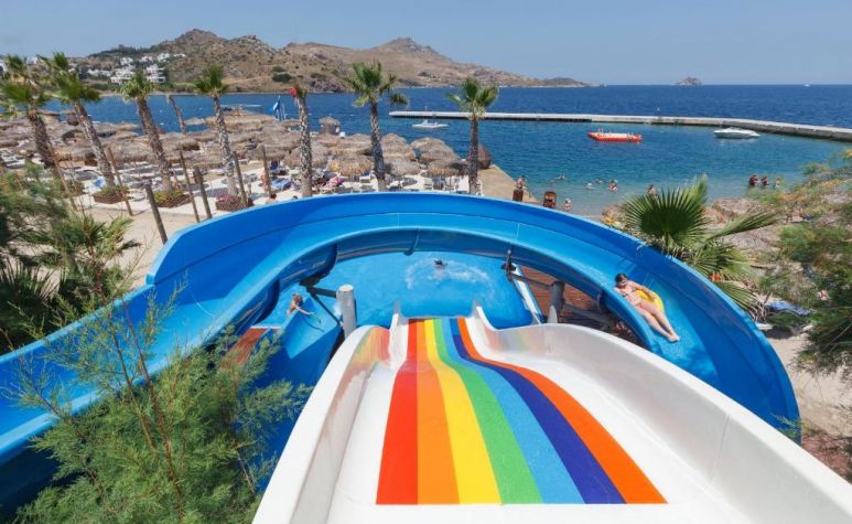 За децата: Детско меню, детски басейн, водни пързалки, детска площадка, мини клуб (4–12 год.), детски стол.