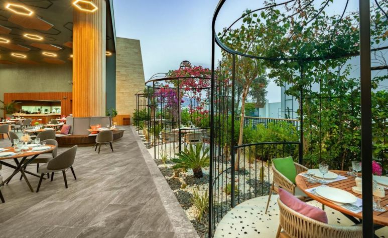 Основен ресторант, 4 а-ла-карт ресторанта (Vetusto - италиански, Koz - турски, Pul - рибен и Gusto 24 - отворен 24/7), 5 бара - Lobby Bar 24/7, Pool Bar 10:00-00:00, Beach Bar 10:00-23:00, Beach Club 10:00-01:00, Relax Bar 10:00-18:00, Snack ресторант, сладкарница, 3 открити и 1 закрит басейн, СПА център.