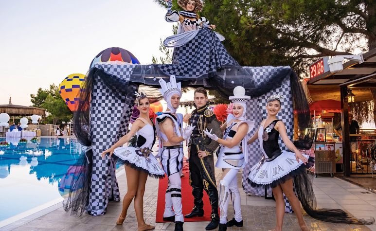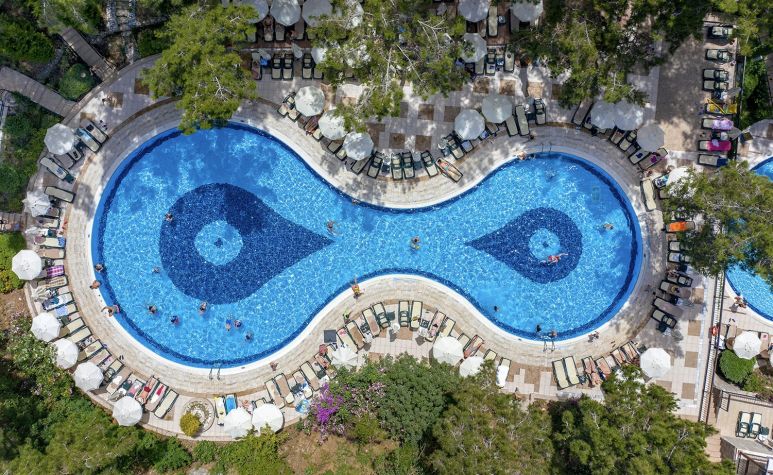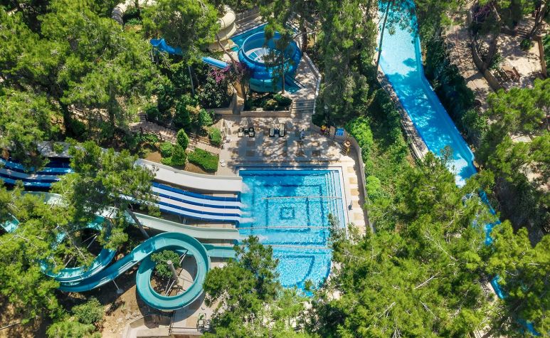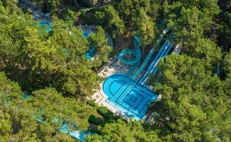 Основен ресторант, 3 а-ла-карт ресторанта (италиански, турски, рибен – срещу допълнително заплащане), 3 снек ресторанта - възможност за приготвяне на специални ястия за гости с алергии, 8 бара, сладкарница, 5 открити басейна, вътрешен отопляем басейн, аквапарк с 8 пързалки, фитнес, СПА център, магазини, 3 конферентни зали с оборудване, Wi-fi интернет – според концепцията на хотела.