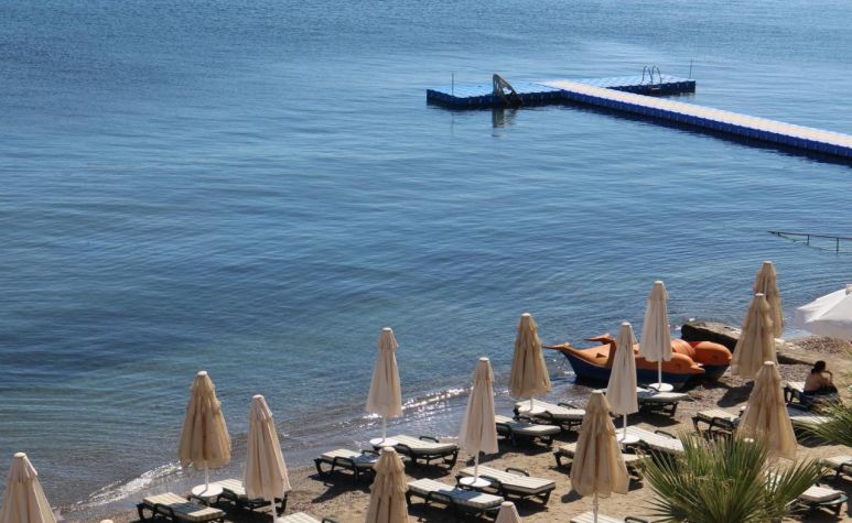 Собствен, пясъчен. Чадъри, шезлонги и матраци на плажа и при басейна – безплатно. Плажни кърпи – безплатно.