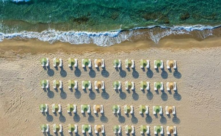 Собствен, пясъчно - чакълест. Чадъри, шезлонги и плажни кърпи на плажа и при басейна – безплатно. Шатъл за гостите на хотела.