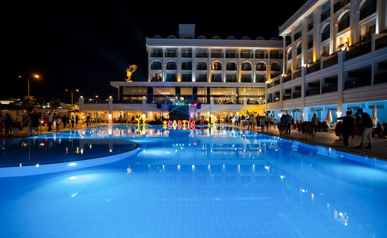Основен ресторант, 4 а-ла-карт ресторанта - рибен, турски, италиански (1 безплатно посещение на 1 от ресторантите при минимум 7 нощувки), стек (срещу заплащане с предварителна резервация), сладкарница, Starbucks кафе, 6 бара, 2 открити и 1 закрит басейн, водни пързалки, СПА център, дискотека, магазини, конферентнa залa, паркинг.
