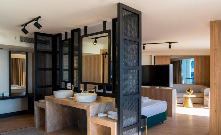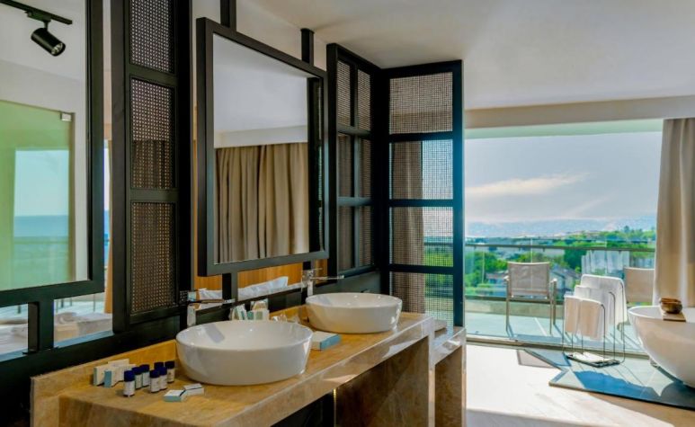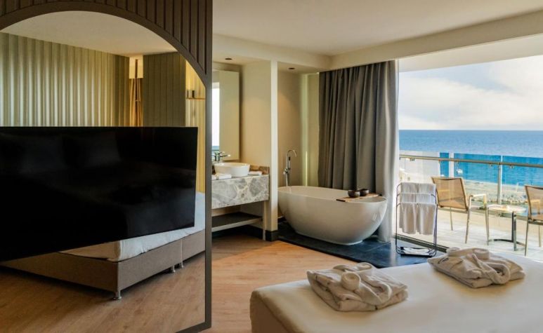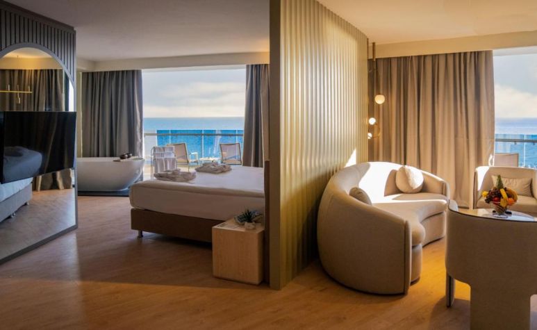 186 Standard Land view room (изглед суша -31 м2), 91 Standard River and Sea view room (изглед река/море - 31 м2), 29 Standard Large room (изглед суша - 35 м2), 7 Senior  Land view room (изглед суша - 37 м2), 69 Senior Sea view room (изглед море -37 м2), 6 Alarcha Suite room (1 спалня,1 баня - 60 м2 , в деня на пристигане се предоставят плато с плодове и вино, Espresso машина).