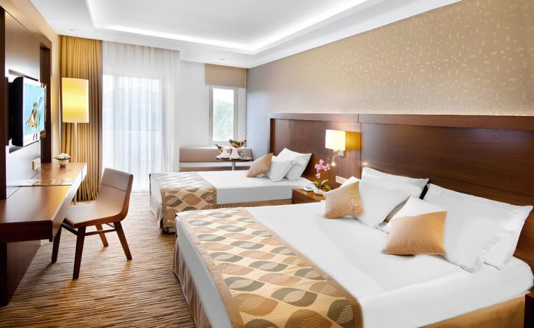 Стаи Club room: 164 Comfort Club Room (изглед градина, 28-30 м2), 2 Deluxe Villa Apart A Style (2 спални, 1 хол с кухненски бокс, 2 бани + джакузи - 84 м2), 6 Deluxe Villa Apart B Style (1 спалня, 1 хол с кухненски бокс, 1 баня + джакузи - 84 м2), 6 Disabled room (стая за инвалиди - 30 м2 ).