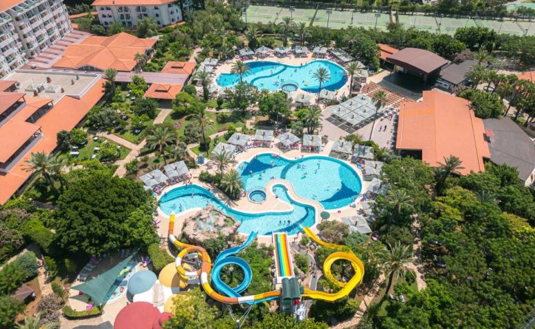 Основен ресторант, 3 а-ла-карт ресторанта (рибен, турски, италиански – срещу заплащане с предварителна резервация, снек ресторант, гьозлеме, сладоледена къща, сладкарница, 5 бара, 2 открити и 1 закрит басейн, 4 водни пързалки, амфитеатър, СПА център, дискотека, магазини, 12 конферентни зали, паркинг.