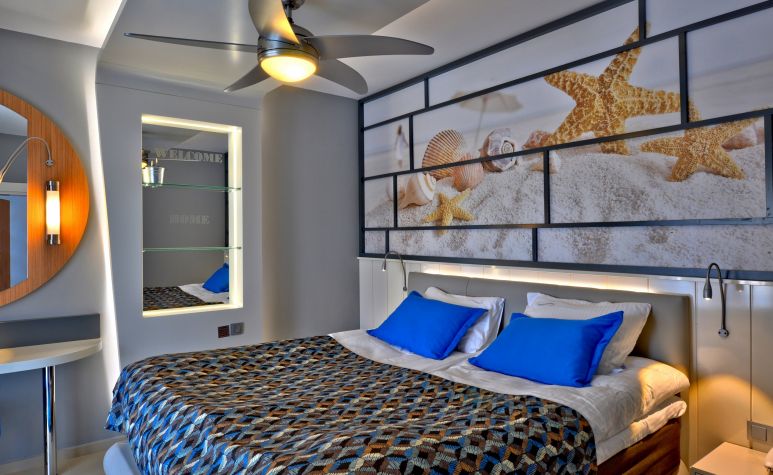Хотелът разполага с общо 306 стаи, сред които: Standard Room (29 m2) и Family Room (40 m2). Всички стаи са оборудвани климатик, телевизор, телефон, баня с душ, сешоар, минибар (зареждане с вода всеки ден), сет за приготвяне на чай/кафе, сейф, балкон. Смяна на спално бельо и хавлиени кърпи – 2 пъти в седмицата.