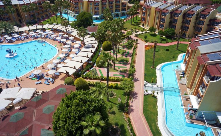 Намира се на 130 км. от летище Анталия, на 10 км. от Алания, в района на селището Конаклъ, на брега на морето. Построен през 1989 г., с обща площ 45 416 м2, последно реновиран през 2015 г.
