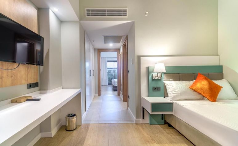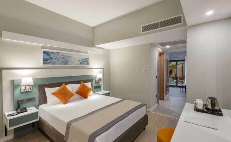 Основен ресторант, турски а-ла-карт ресторант, италиански а-ла-карт ресторант, лоби бар, бар при басейна, снек бар, бар на плажа, сладкарница, открит басейн с джакузи, аквапарк със 7 водни пързалки, закрит отопляем басейн, SPA център с турска баня и сауна, анимационна програма със спортни и развлекателни дейности, жива музика, тематични вечерни представления, безплатен безжичен интернет на територията на целия хотел.