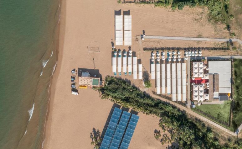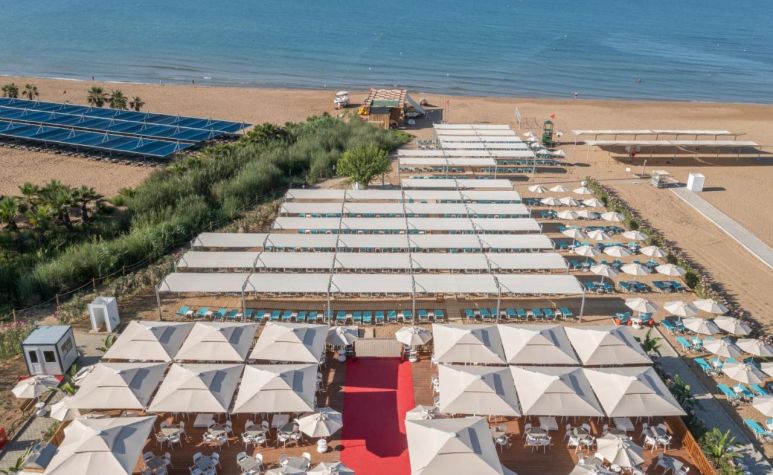 Собствена пясъчна плажна ивица с плавен преход на разстояние 400 метра от хотела. За удобство на гостите на хотела е предвиден безплатен шатъл бус до плажа. Безплатно ползване на чадъри и шезлонги на плажа и при басейна.