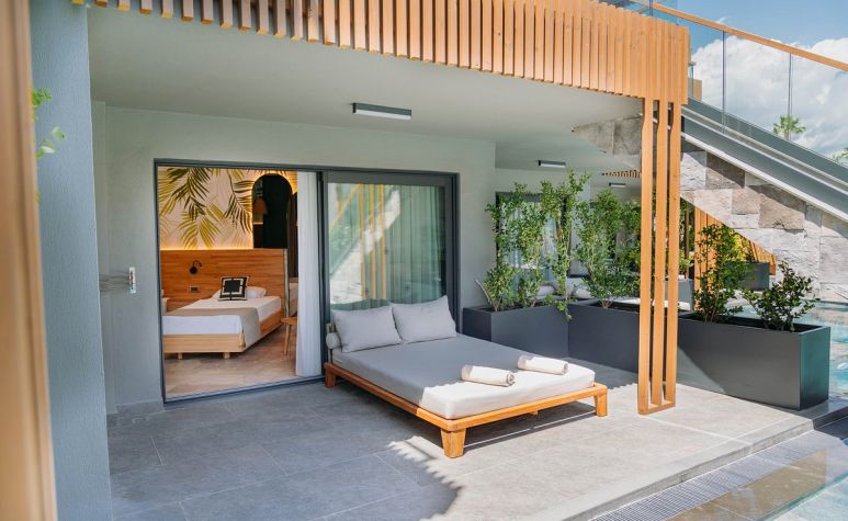 Хотелът се състои от 523 стаи, разпределени в 24 блока на 3 етажа. Разполага с 314 club rooms (клубната част е на брега на морето), 114 Lagoon rooms ,95- park rooms. Клубна част: 224 Club Deluxe Rooms ( 2-3 човека ,26 – 27 m2), 38 Lagoon Swim-Up Direct Access Room ( 2-3 човека ,25 m2), 34 Lagoon Swim-Up Room with Stairs ( 2-3 човека ,25 m2) 4 Club Deluxe Handicapped Rooms ( 2 човека, 26 m2), 86 Club Deluxe Family Rooms ( 4-5 човека/ 2 спални, 1 баня, 2 балкона /, 36-40 m2), Парк стаи: 76 Standard Park Rooms (2-3 човека, 22 m2), 19 Park Family Rooms (4-5 човека, 28 m2).