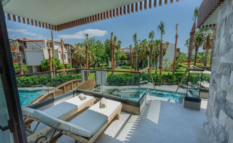 1 основен ресторант (VERANDA RESTAURANT), 4 а ла карт ресторанта (OLIVE TREE – World Cuisine , ROKA BEACH by TUANA – Asian Cuisine (Only for Adults and +16 Age), RISTORANTE ROMA – Italian Cuisine , PELAGOS - Seafood Restaurant),9 бара , 1 кафене , външен басейн, детски басейн, вътрешен басейн, , дискотека.
