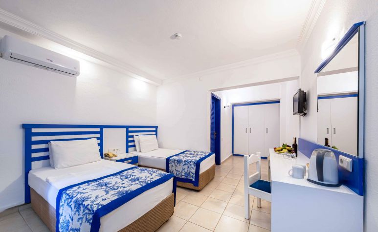 Хотелът разполага с общо 196 стаи, разположени в 11 блока , от които 28 Economy room – разположени на сутерен (17 m²), – 131 Standard room (20 m²), 29 Bunkbed room (22 m²),8 Dublex room. Всички стаи са оборудвани с климатик, LCD телевизор със сателитни канали, телефон с директно избиране, баня с душ, сешоар, мини-бар (с безалкохолни напитки), комплект за чай/ кафе, будоар, тоалетка с огледало, сейф (платен), балкон или тераса. Почти всички помещения са с ламинат/ паркет. Икономичните стаи са с фаянс и са разположени на сутерен. Почистване на стаите - всеки ден, смяна на спално бельо – 3 пъти в седмицата.