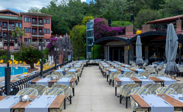 Хотелът се намира на 60 км. от летището в гр. Даламан, на 12 км. от Фетие, на 100 м от центъра на Олудениз, на 150 м от брега на морето. Построен през 1996 г. на площ 20 000 м2, частично реновиран през 2014 г.