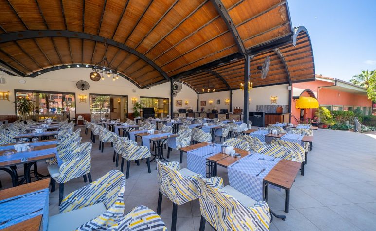 Хотелът разполага с 206 стаи, външен басейн, релакс басейн, детски басейн, вътрешен басейн, основен ресторанта, 3 бара, дискотека, билярд (срещу депозит), дартс, тенис на маса (срещу депозит), тенис на корт (срещу депозит), мини клуб (4-12), анимация. Услуги предлагани в хотела безплатно: турска баня, сауна, фитнес, дискотека. Услуги предлагани в хотела срещу заплащане: масаж, спа център, фризьор, парасайлинг, детегледачка, пералня, осветление за тенис корт, лекар (на повикване). ПЛАЖ: Собствен – пясъчен, на 1 км. от хотела, безплатен шатъл до плажа няколко пъти на ден. Чадъри, шезлонги, матраци на плажа и при басейна – безплатно.
