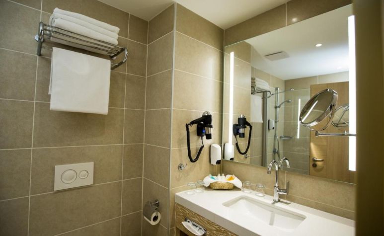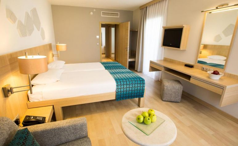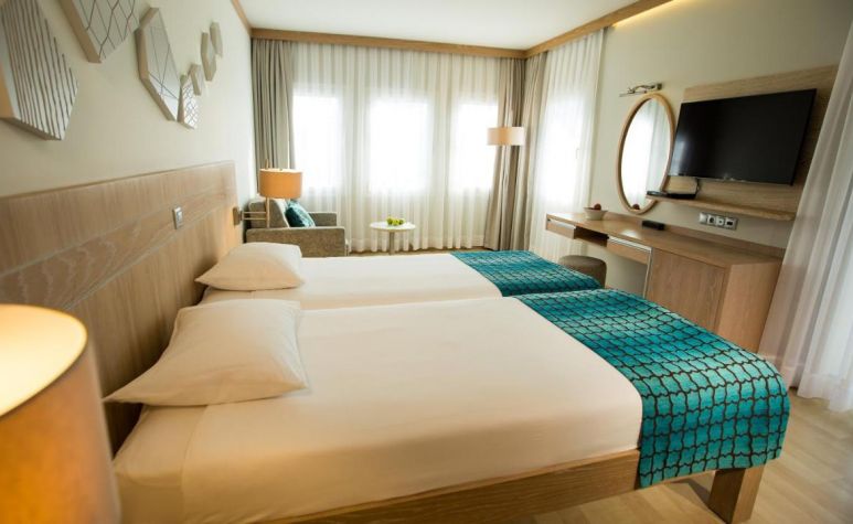 Хотелът разполага с общо 375 стаи, разположени в една основна сграда (145 стаи) и 14 двуетажни вили (230 стаи).Всички стаи са с гледка градина и са оборудвани с климатик, телевизор, телефон, баня с душ, сешоар, WI-Fi интернет (безплатно), сейф (безплатно), мини бар (зарежда се ежедневно - безплатно с безалкохолни напитки, вода, бира, сокове), сет за чай/кафе, балкон. Почистване на стаите - всеки ден, смяна на спално бельо и хавлии - 2 пъти в седмицата.