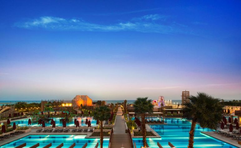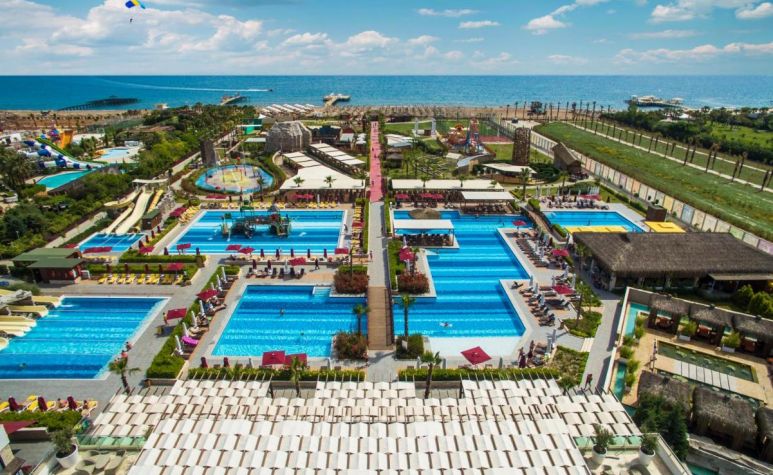 Основен ресторант, 6 а-ла-карт ресторанта (италиански, азиатски, рибен, турски, стек хаус – срещу заплащане; бистро с интернационална кухня - 1 безплатно посещение на 1 от ресторантите при минимум 7 нощувки, с предварителна резервация), 3 снек бара, сладкарница, 9 бара, 4 открити басейна (1 отопляем), 1 закрит отопляем басейн, аквапарк с 9 водни пързалки, СПА център, амфитеатър, открита дискотека, кино, магазини, 5 конферентни зали, паркинг.