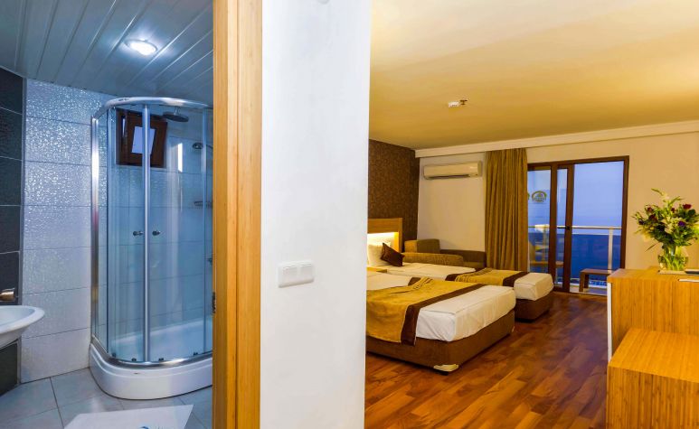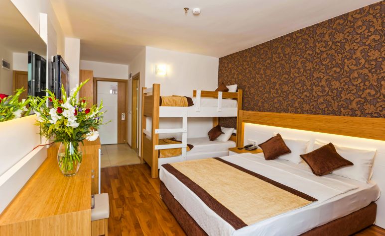 STANDARD ROOM LARGE- Разполагат с 1 спалня или с 1 голямо единично легло + 1 стандартно единично, всички стаи имат баня с тоалетна. Обща площ на стаята 20 м2. Максимум капацитет за настаняване: двама възратни + две деца или 3 възрастни + 1 дете.
