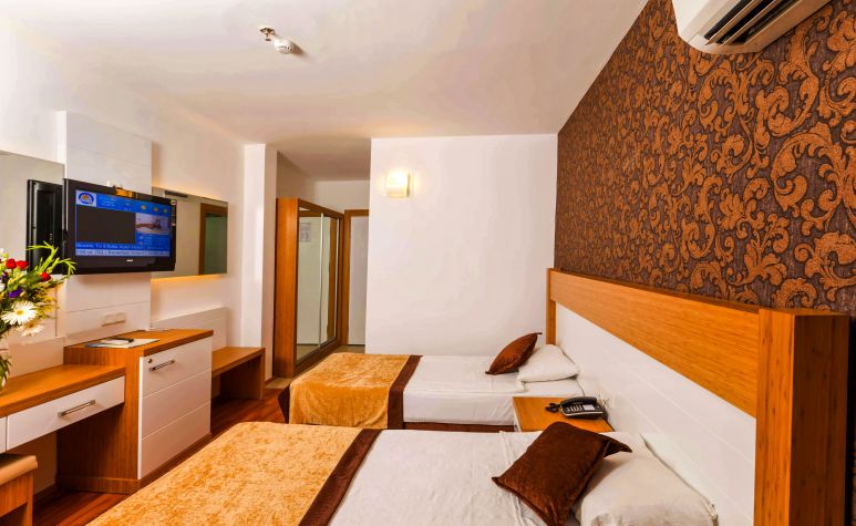 Хотелът се намира на 800м. от центъра на гр.Алания на 125км. от летище Анталия. Построен е през 1986г., с обща площ от 5400 м2., реновиран през 2012г. 3 звезден хотел, само на 1 км от търговските и развлекателни места в центъра на Алания. Можете да се стигнете лесно с автобус и такси до центъра на града.