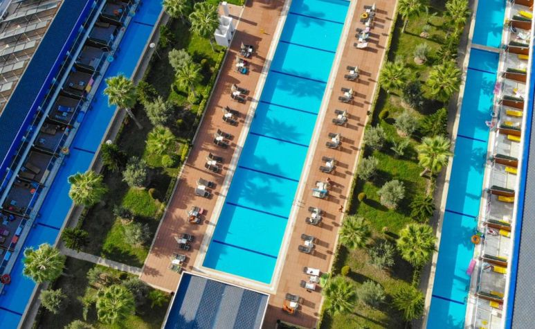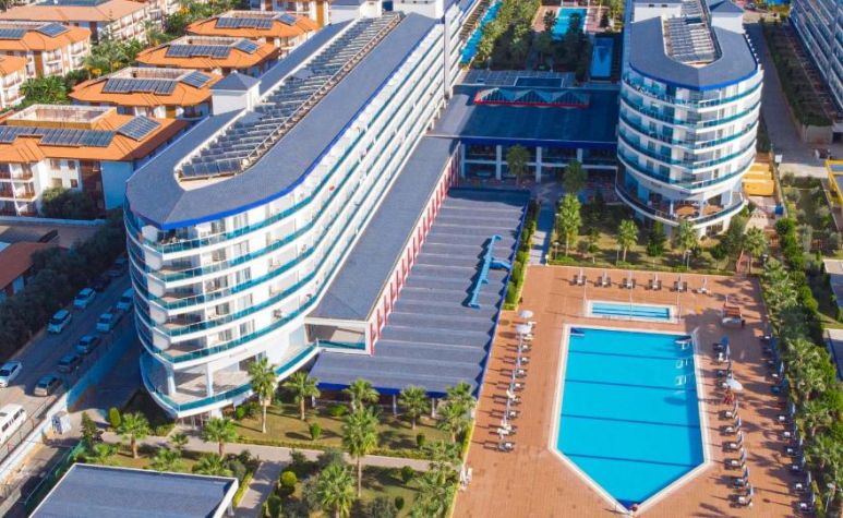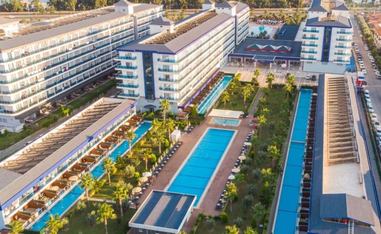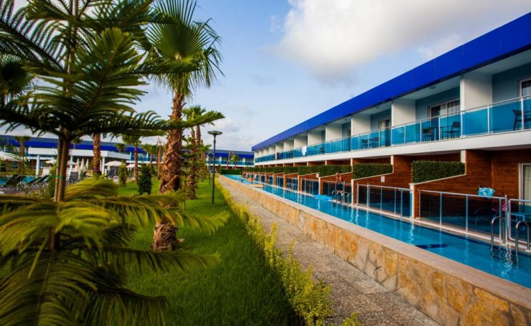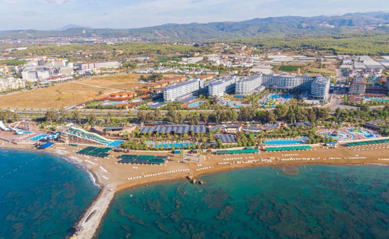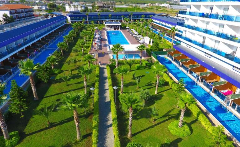 Намира се на 100 км от летище Анталия, на 110 км от центъра на Анталия, на 18 км от центъра на Алания, на 50 м от брега на морето. Построен 2014 г. на обща площ от 44 900 м2. Гостите на хотела имат достъп до Еftalia island, разположен на плажа, състоящ се от аквапарк с басейни, водни пързалки и заведения.