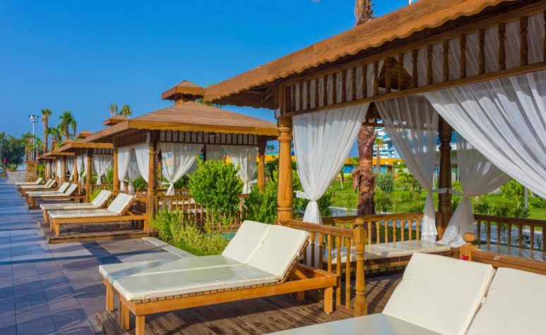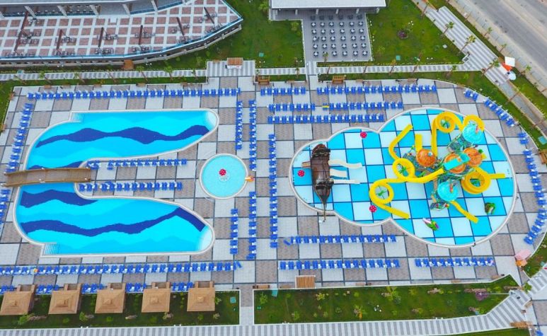 Намира се на 100 км от летище Анталия, на 110 км от центъра на Анталия, на 18 км от центъра на Алания, на 4 км от Конаклъ, на 50 м. от брега на морето (през път). Построен 2017 г., на обща площ от 60 000 м2. Частично реновиран 2023 г. Достъп до Еftalia Island, разположен на плажа, състоящ се от аквапарк с басейни, водни пързалки и заведения.