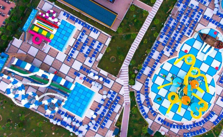 Основен ресторант, 2 а-ла-карт ресторанта (италиански и грил - 1 безплатно посещение при минимум 7 нощувки, с предварителна резервация), снек бар, станция за бързо хранене, гьозлеме, сладкарница, кафетерия, 5 бара, 5 открити и 1 закрит басейн, аквапарк, СПА център, магазини, конферентна зала, паркинг.
