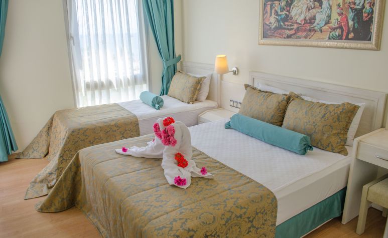 Хотелът разполага с общо 106 стаи, разположени в 2-етажни сгради. Стаи Standard room (20-29 m²), Family room (45 m²), Junior Suit room (25-30 m²), Special room (20-29 m²).